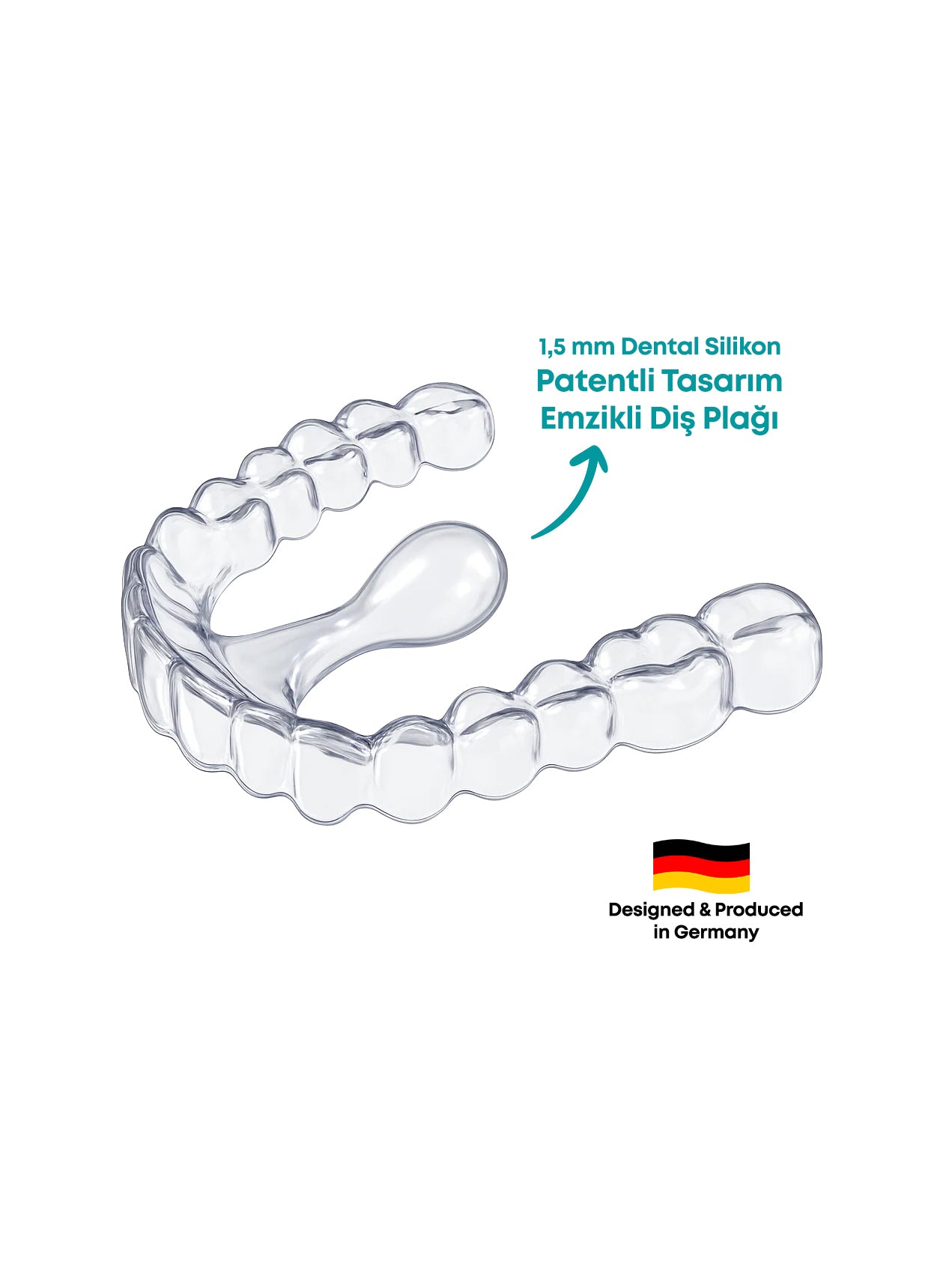Emzikli diş plağına sahip bu yenilikçi tasarım, diş sıkma ve gıcırdatmaya karşı modern ve konforlu bir çözüm sunar. Uyku kalitesinin iyileştirilmesine yardımcı olurken, diş sıkmaya bağlı baş ağrıları ve migrenle ilişkili rahatsızlıkların hafiflemesine katkı sağlayarak daha dinlendirici bir uyku deneyimini destekler.